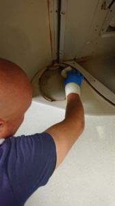 家庭用とは異なる強力な洗剤や機材を使い、こびりついた油汚れやカビを徹底除去!