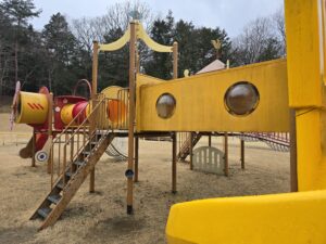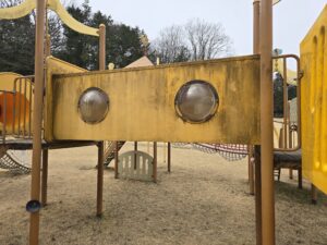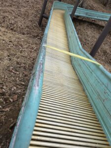杉、ヒノキの花粉もおさまりましたが遊具にはたくさんの花粉が付着しそこに土ぼこりなども付着しています